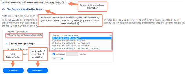 Learn about new features available to you in the Verint Cloud. Understand which features are available by default and which ones need to be enabled by your administrator. Read feature descriptions, access documentation and watch videos. You can also learn about features that are not available to you yet and start getting prepared.