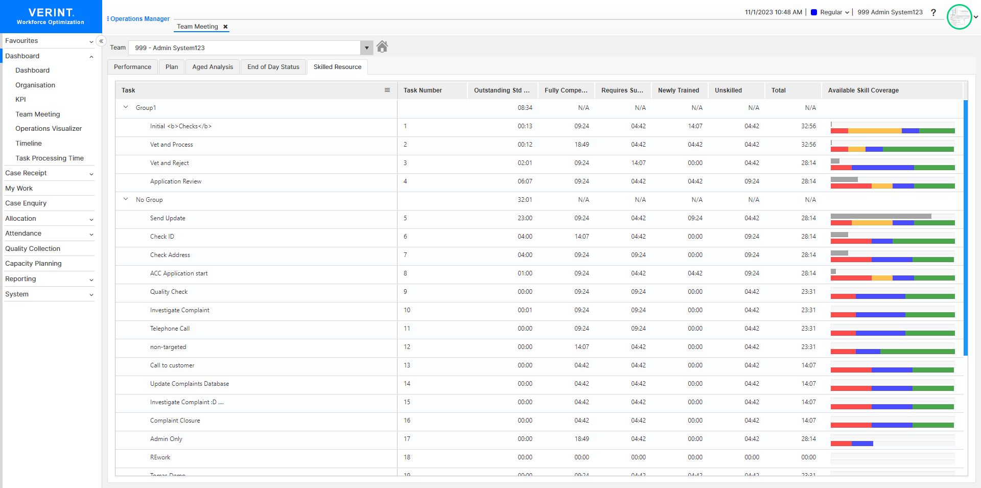 The Team Meeting Dashboard now supports multi-select for organisation units, giving managers greater operational oversight. You can select multiple teams and departments and view aggregated performance data across them. This enhancement applies to the following tabs: