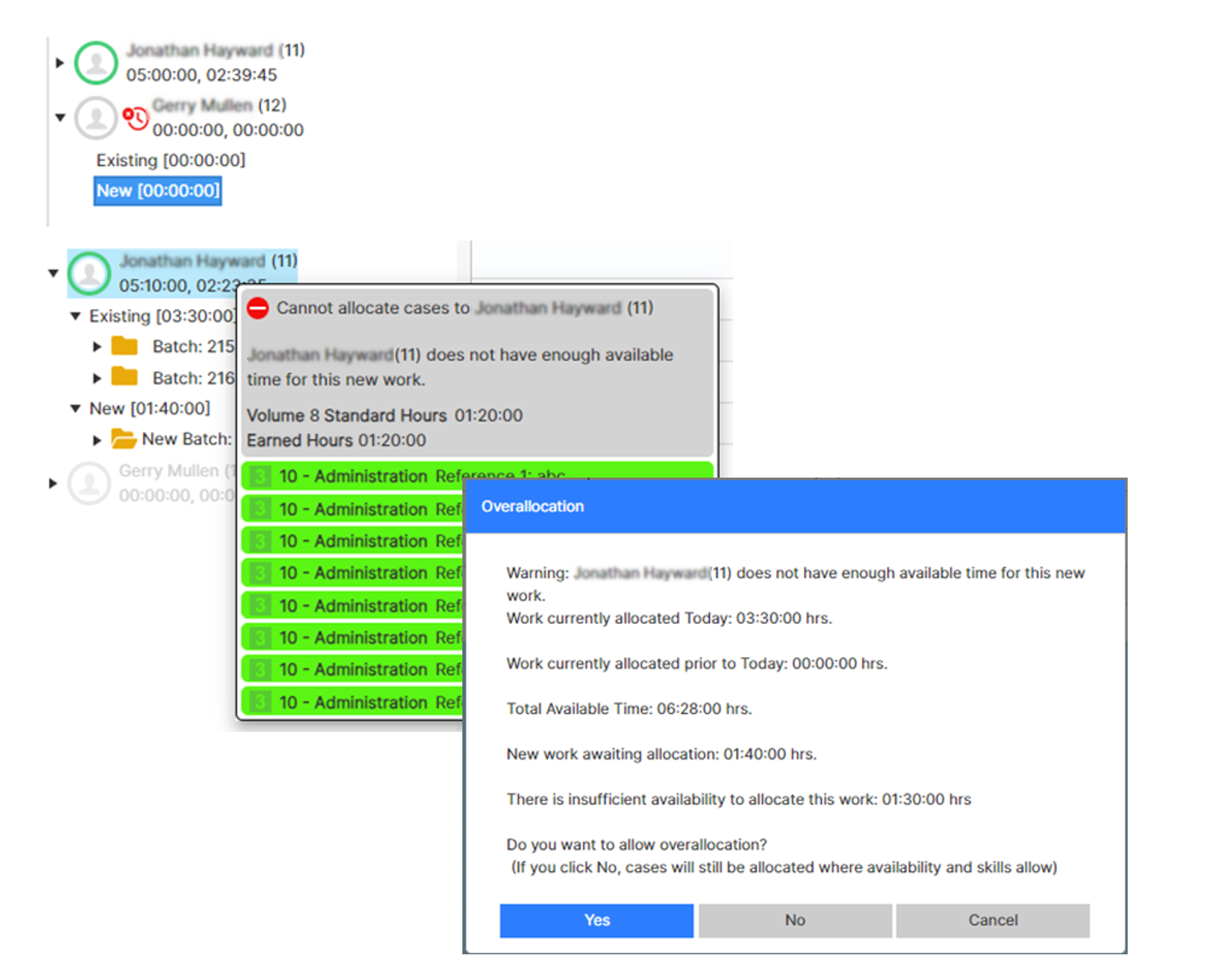 If they have available time applied for the team, but not enough remaining to receive the cases, OM prompts to allow overallocation.